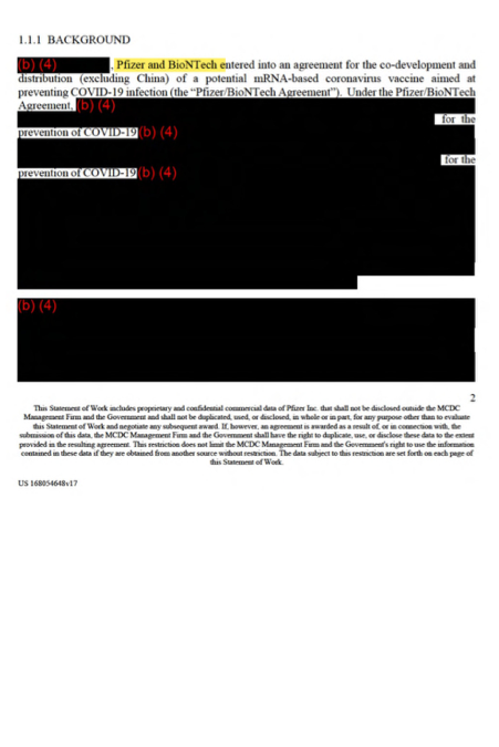 Hunderte von Verträgen über Covid- Gegenmaßnahmen wurden über FOIA (Freedom of Information Act) und SEC- Offenlegungen(Secretary for Health and Human Services-Offenlegungen) in geschwärzter Form zugänglich. Die Durchsicht dieser Verträge deutet auf ein hohes Maß an Kontrolle durch die US- Regierung (DoD/BARDA) (BARDA=Biomedical Advanced Research and Development Authority) hin und legt den Umfang der zu erbringenden Leistungen ausschließlich auf „Demonstrationen“ und „Prototypen“ fest. Mit anderen Worten: Die US-Regierung und das Verteidigungsministerium haben bei den Pharmaherstellern gezielt eine gefälschte Theateraufführung bestellt. Um sicherzustellen, dass die Pharmakonzerne die Fälschungen durchführen können, enthalten die Verträge die Aufhebung jeglicher Haftung für die Hersteller und alle Auftragnehmer entlang der Liefer- und Vertriebskette gemäß dem PREP-Gesetz von 2005 und damit verbundenen Bundesgesetzen.