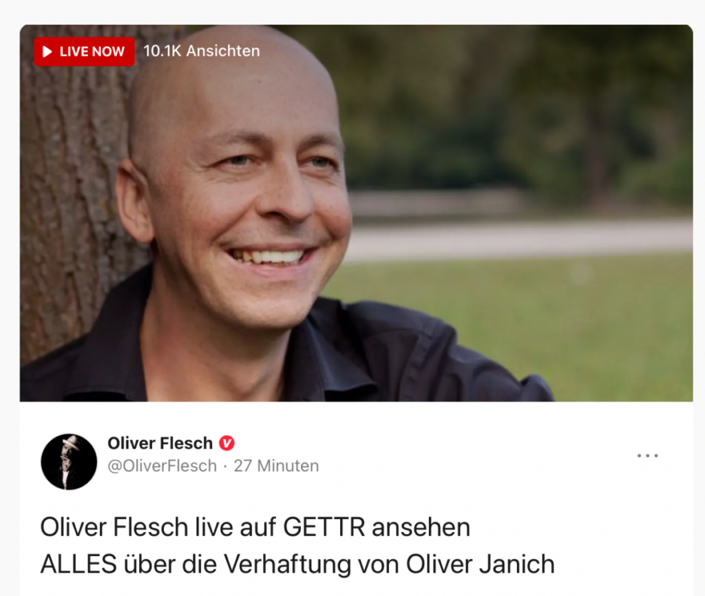 Buchautor Oliver Janich ist auf den Philippinen verhaftet worden. Er soll in Handschellen zum Flughafen in Manila gebracht worden sein. Es steht laut verschiedenen Informationen eine Abschiebung nach Deutschland im Raum. Der mit Janich befreundete Journalist Oliver Flesch hat eine Sondersendung auf GETTR um 14:15 Uhr gestartet, in der weitere Informationen zu erfahren sein werden.