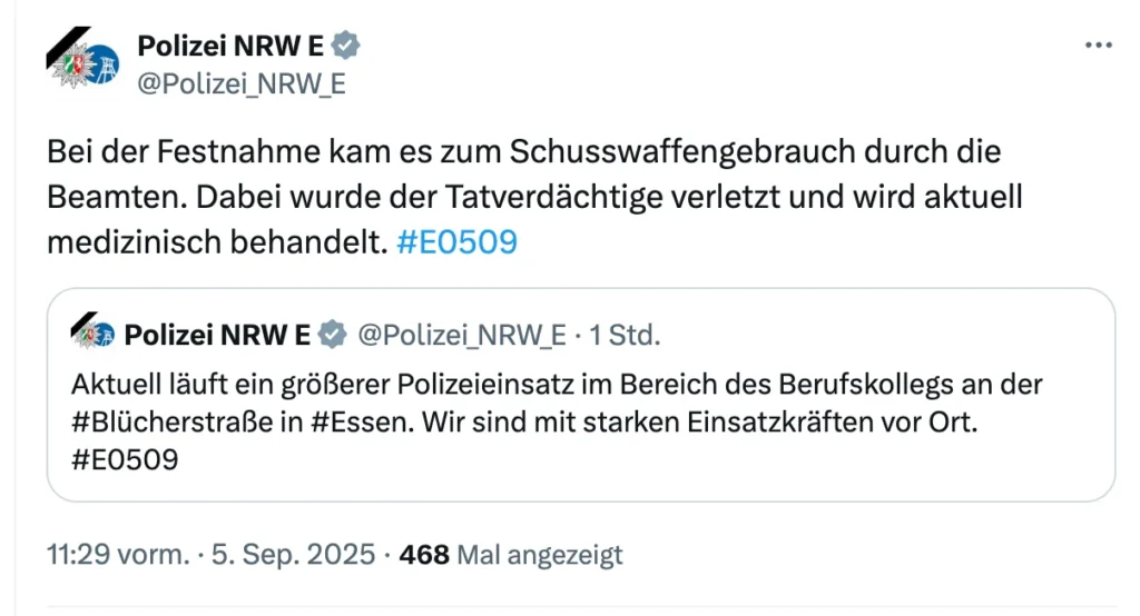 Messer-Alarm in Essen: Lehrerin niedergestochen – Angreifer von Polizei angeschossen