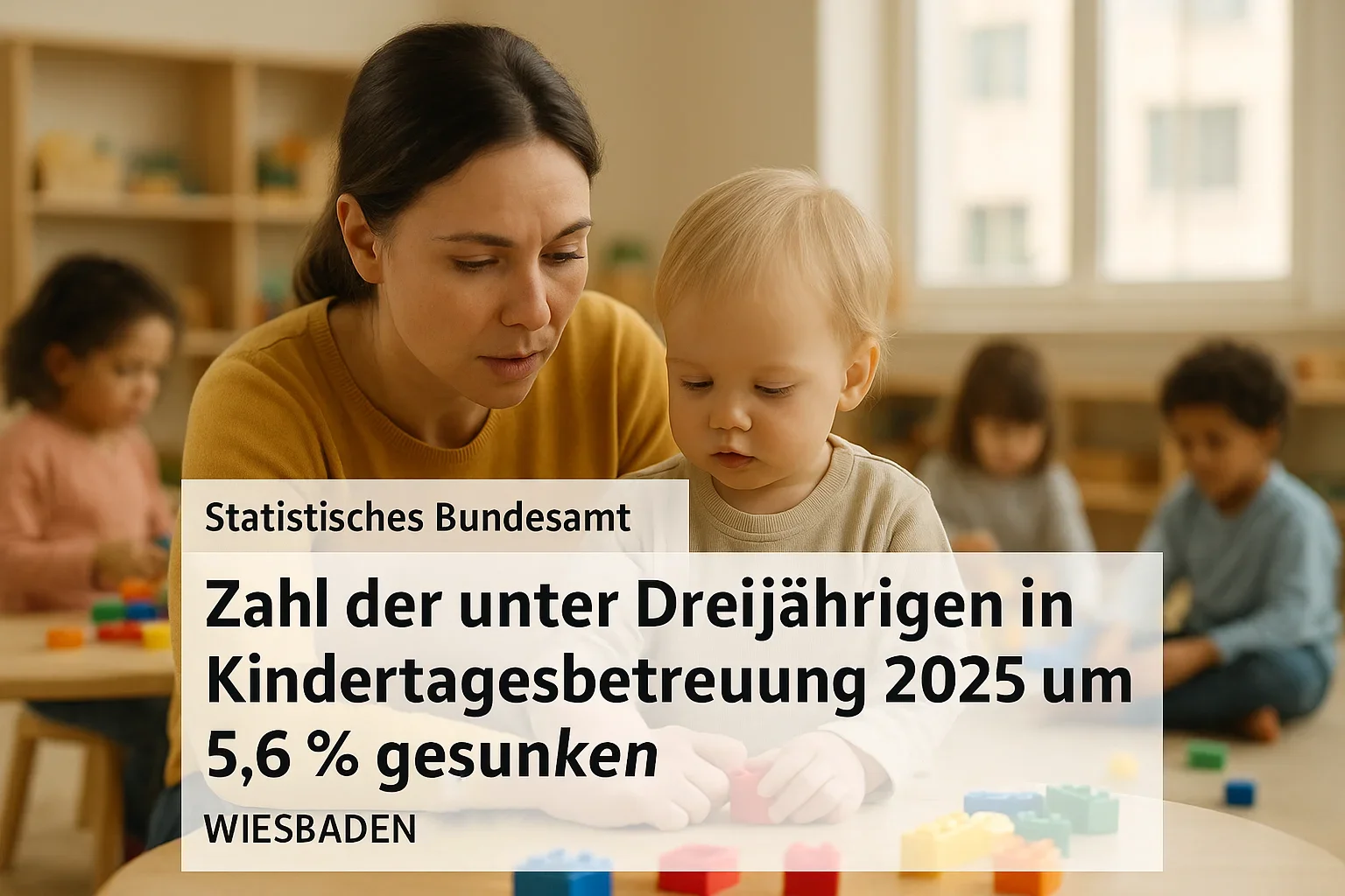 Die Zahl der Kinder unter drei Jahren in Kindertagesbetreuung ist 2025 erneut deutlich gesunken – um satte 5,6 %. Wie das Statistische Bundesamt (Destatis) berichtet, sind bundesweit nur noch rund 801 300 Kleinkinder in Betreuung. Zum zweiten Mal in Folge geht damit die Zahl der betreuten Kinder zurück – und erstmals seit Beginn der Erhebungen auch die Gesamtzahl aller betreuten Kinder überhaupt.